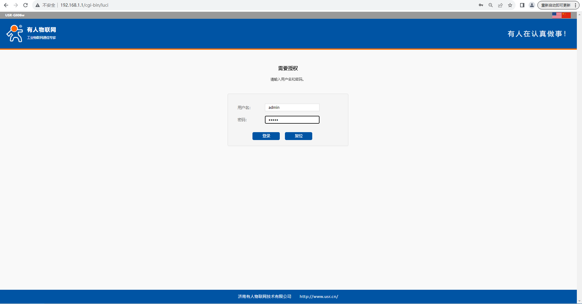 2>.輸入設備LAN口IP(出廠默認192.168.1.1)進入內置網頁,用戶名密碼均為admin