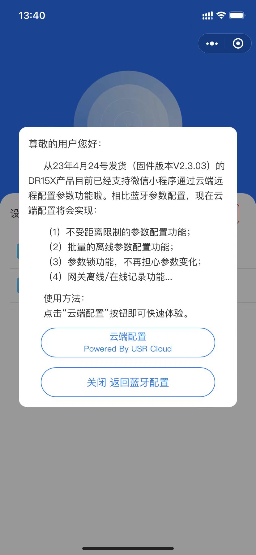 DR154外殼正面貼有設(shè)備專屬二維碼,手機微信掃描該二維碼即可跳轉(zhuǎn)有人云手機端微信小程序登錄添加網(wǎng)關(guān)設(shè)備。有人云手機端微信小程序介紹可以參考說明:http://cloud.usr.cn/document/334.htm