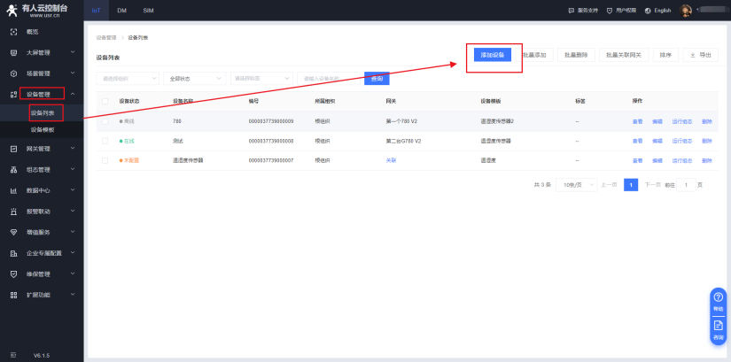 7.在設(shè)備管理—設(shè)備列表——添加設(shè)備