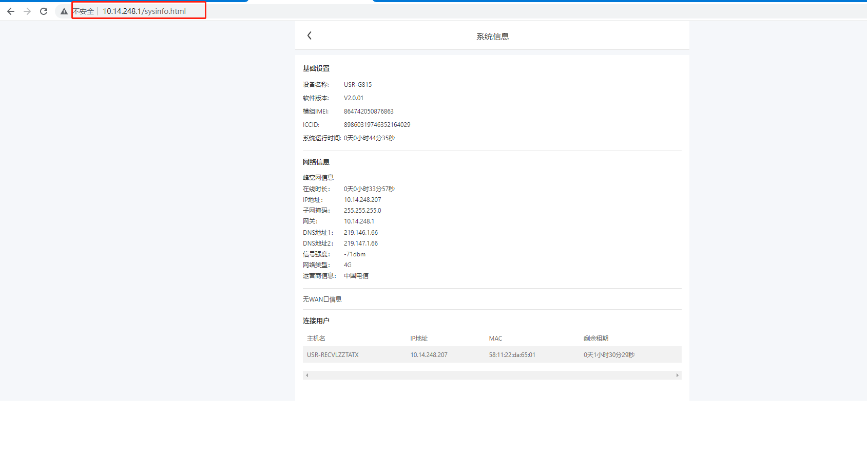 1、 首次使用 USR-G815 設備時,可以通過 PC 連接 USR-G815 的 LAN 口,通過 web 管理頁面配置。IP 地址和密碼如下