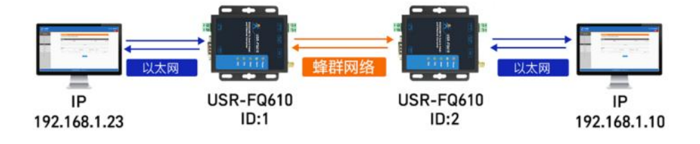 為方便測試,兩臺USR-FQ610串口均接電腦進行測試。