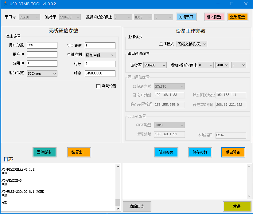 G. 點擊保存參數,點擊重啟設備,點擊關閉串口。