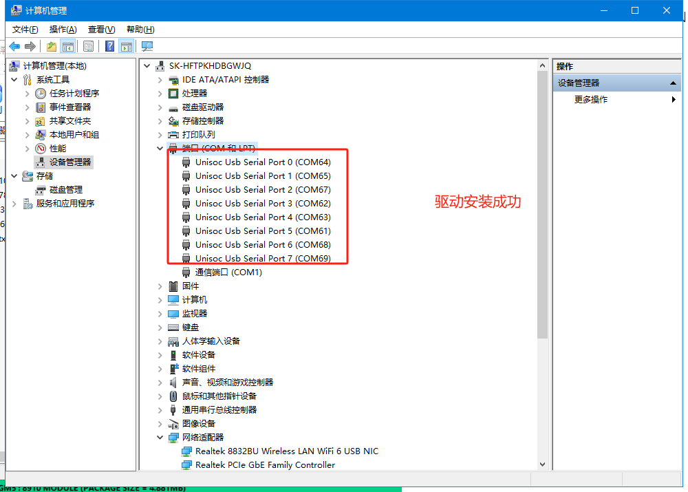 2.安裝完驅動,用數據線接780s的升級口,usb端接電腦,可以看到電腦識別到很多的串口,說明驅動安裝成功
