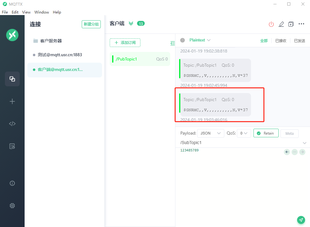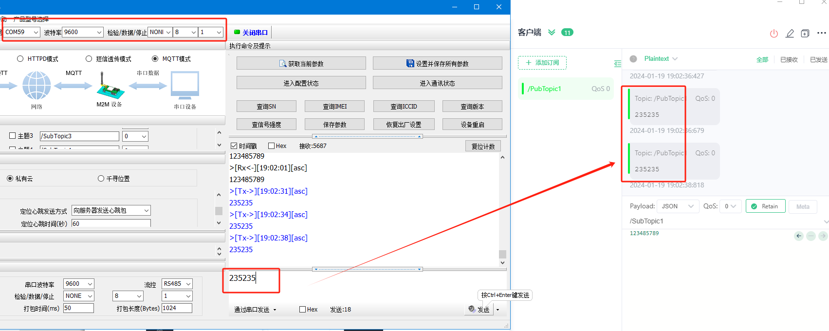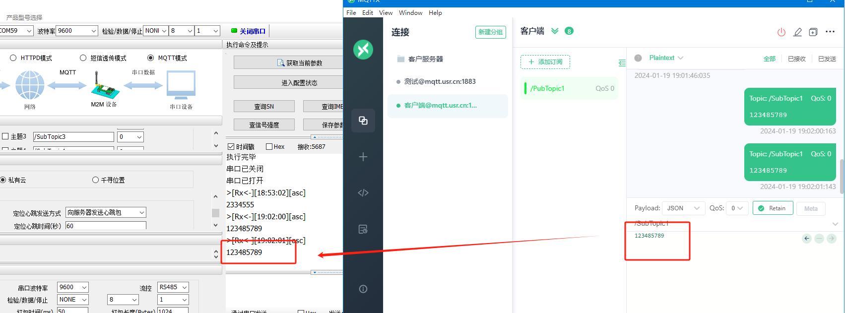 可以看到可以通過mqtt軟件下發數據到780s的串口