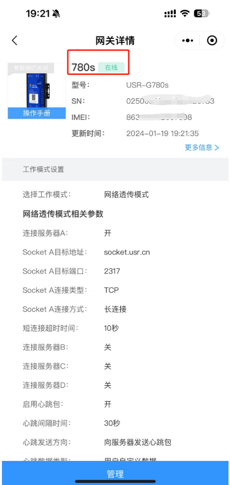 可以看到上報的定位信息(測試是放在室內,所以沒有定位上,780s是室外定位,正常您使用時,需要放在室外,是可以看到定位到的有效數據的)