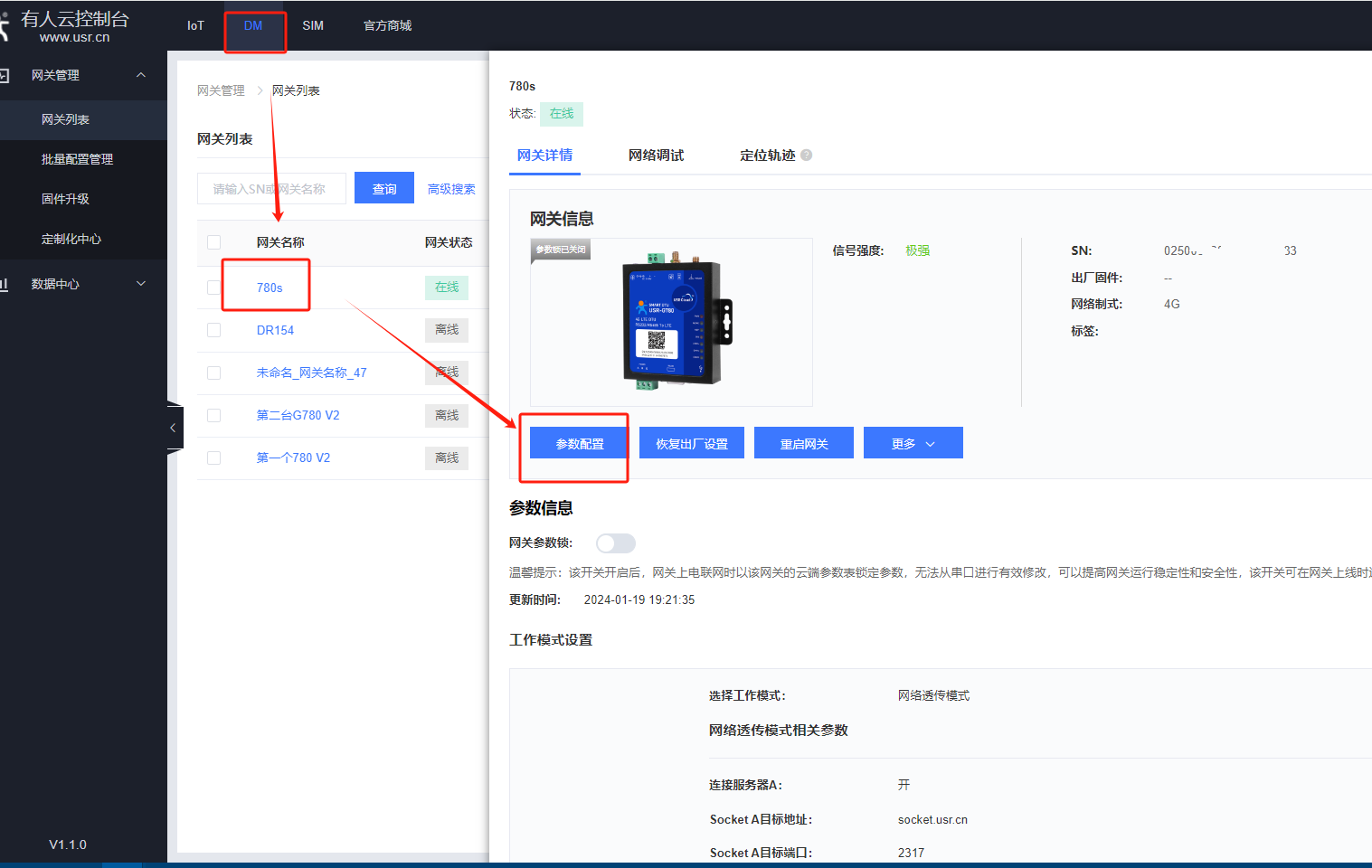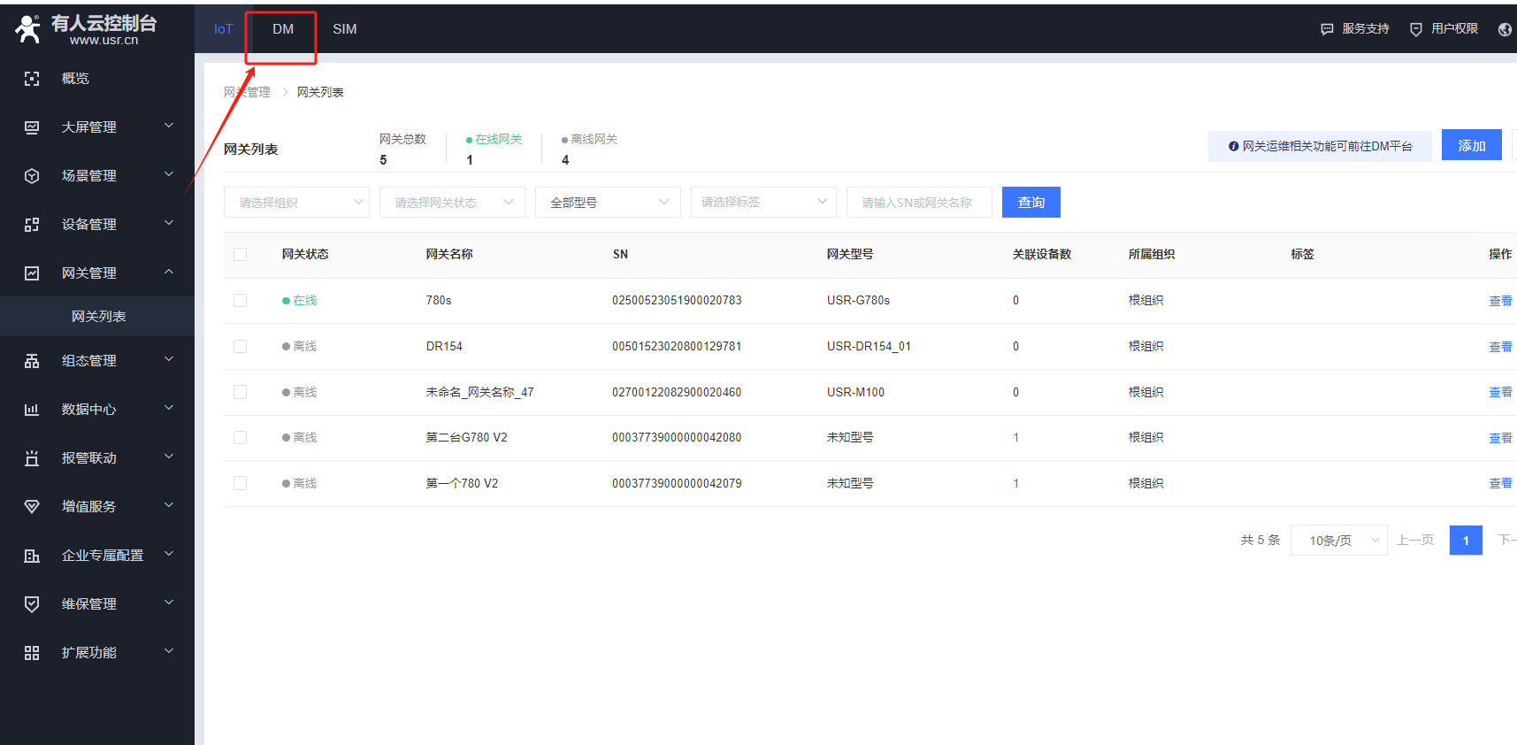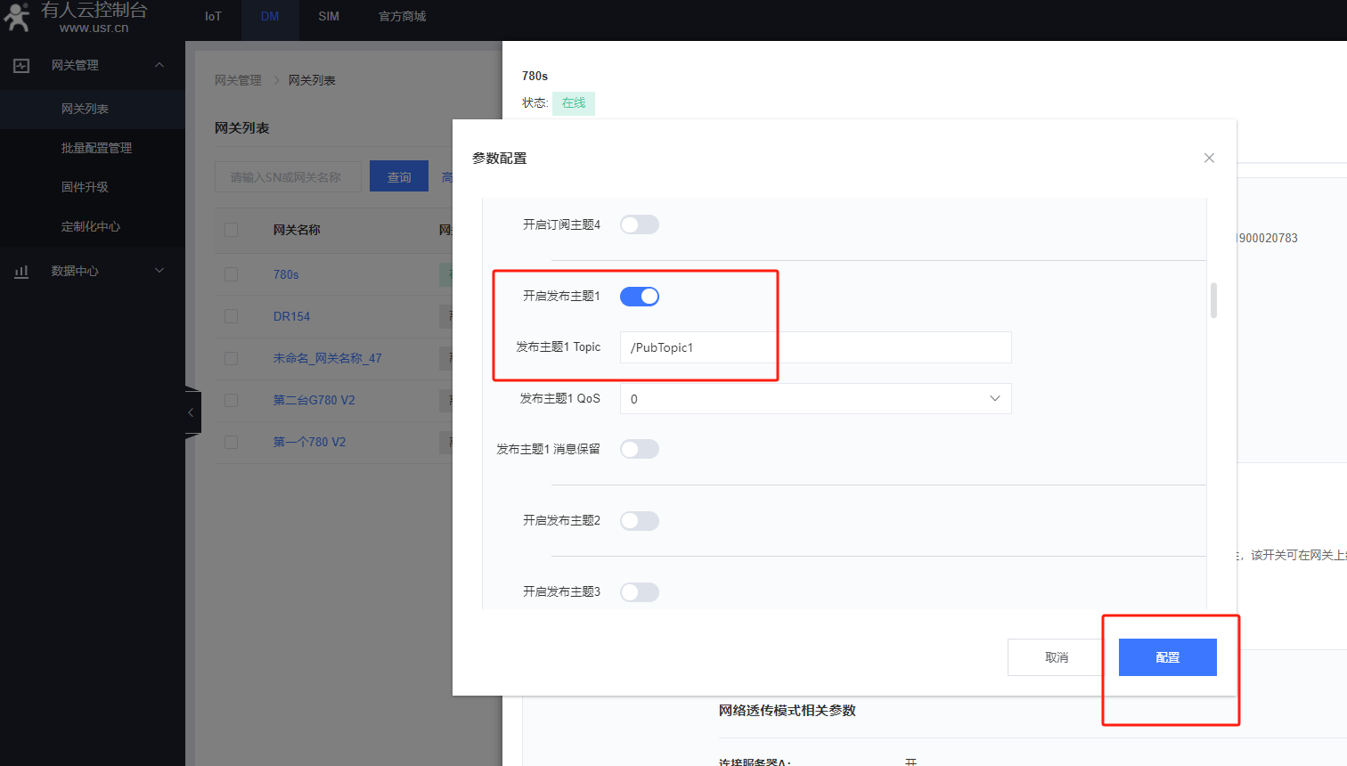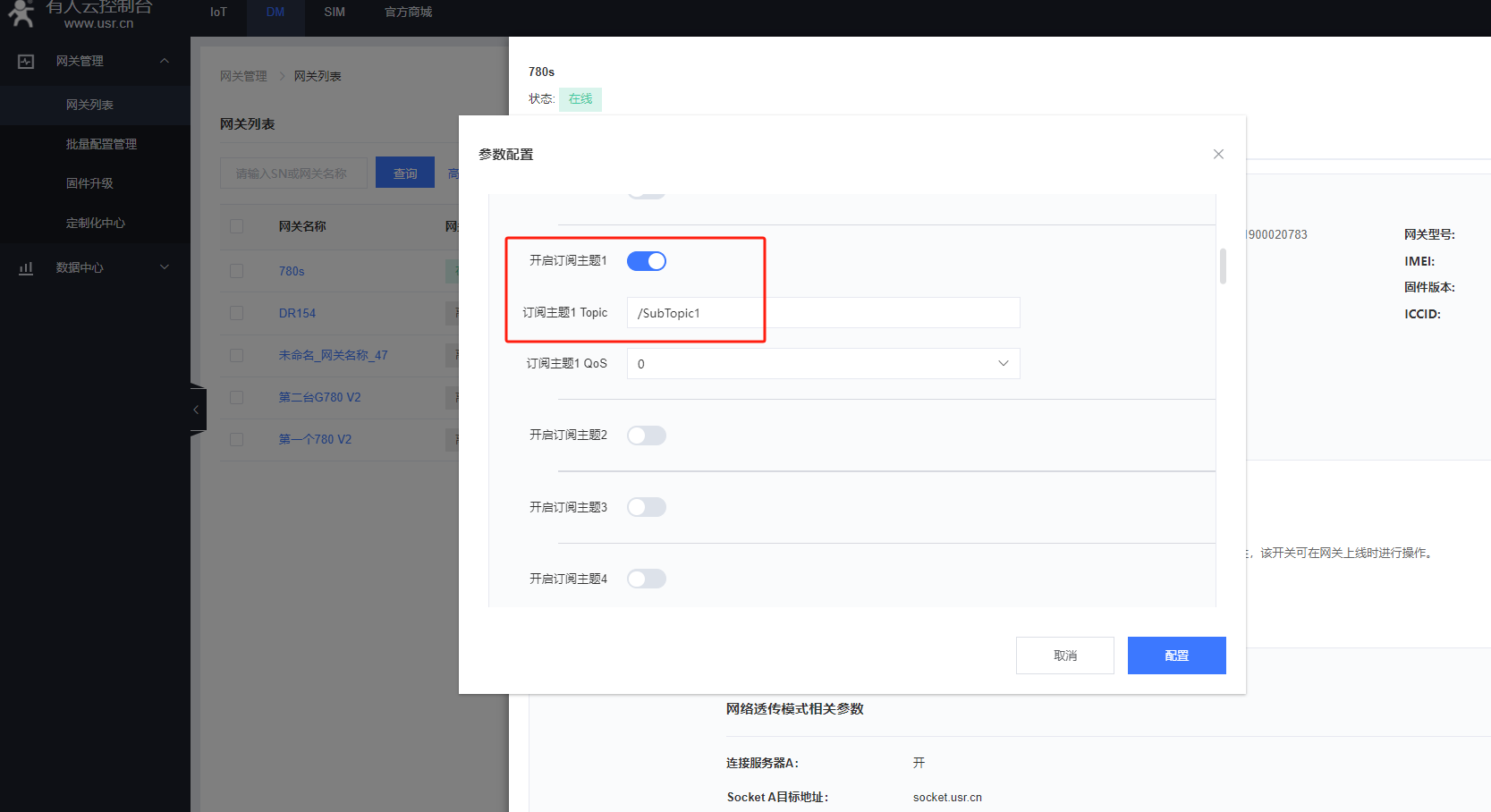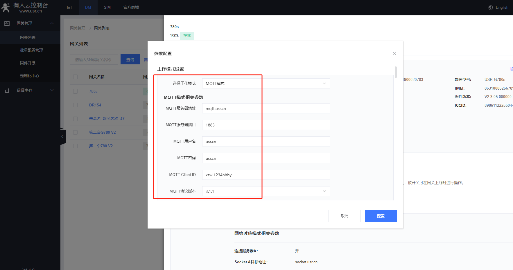 可以看到添加的網關,點擊DM平臺,跳轉配置網關連接mqtt服務器