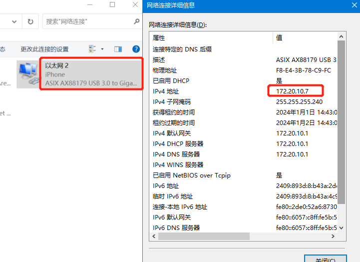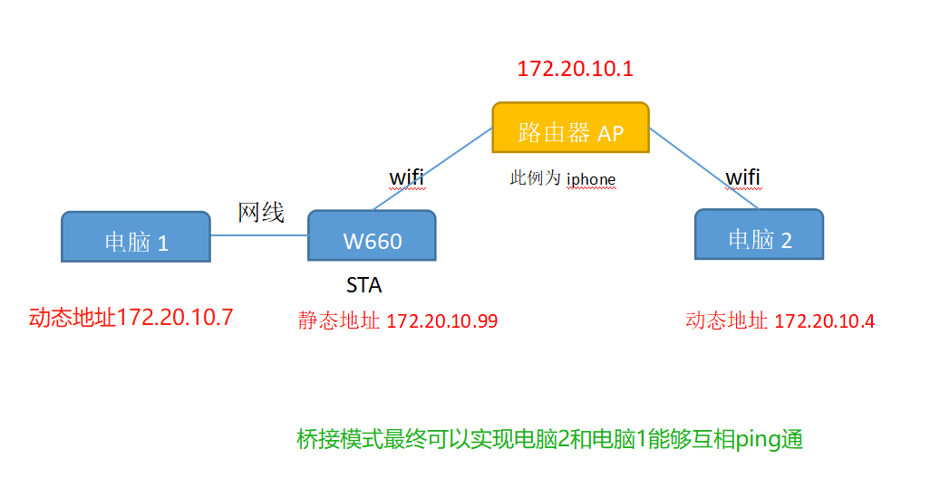 1、用一臺PC1有線連接W660的LAN口,可以看到PC1從上級AP(此例為iphone)上獲取到了172.20.10.7