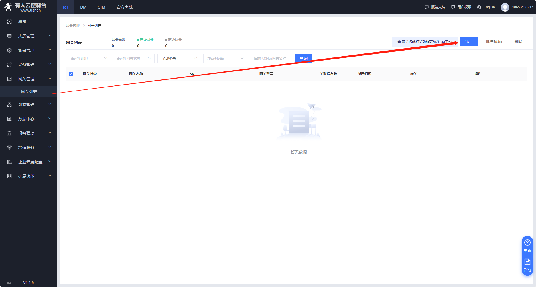 1、云平臺(tái)添加設(shè)備,在網(wǎng)關(guān)管理---網(wǎng)關(guān)列表--添加網(wǎng)關(guān),點(diǎn)擊SN不支持,系統(tǒng)自動(dòng)生成,不需要自己設(shè)置,打開(kāi)有人云透?jìng)鏖_(kāi)關(guān),通訊密碼可以自定義8位密碼.(建議使用系統(tǒng)自動(dòng)生成的通訊密碼)