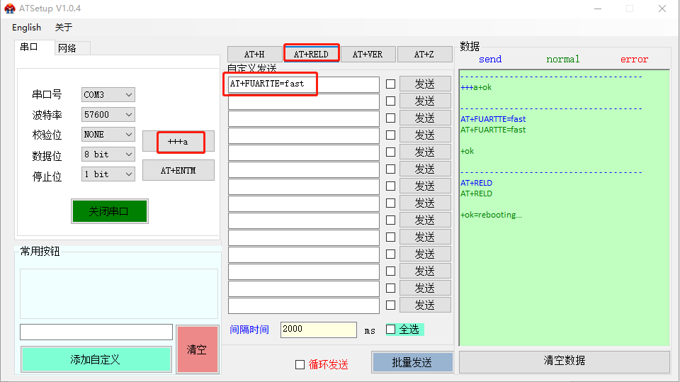 1、打開串口,發送+++a,進AT指令配置狀態。