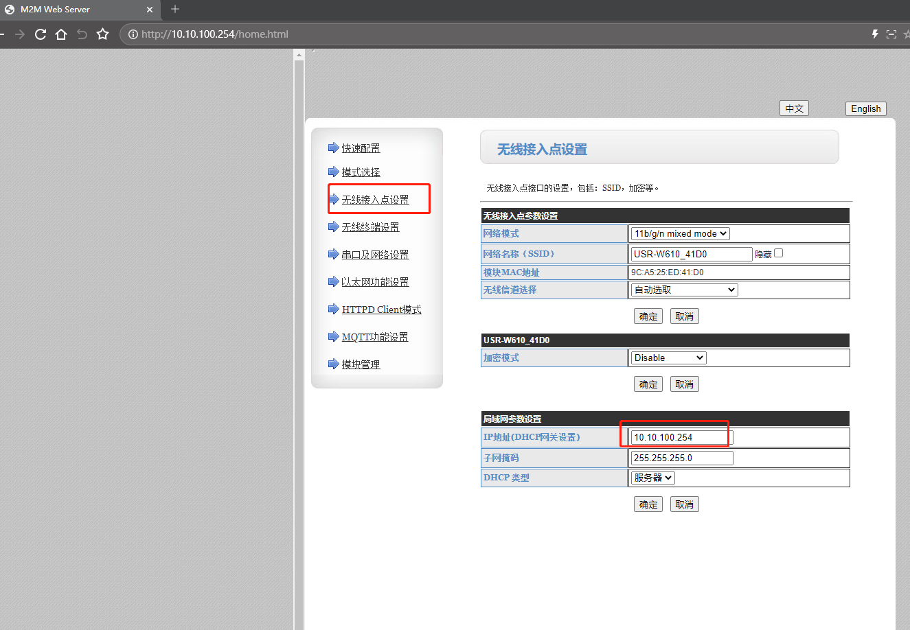 四、網(wǎng)頁配置USR-W610參數(shù)