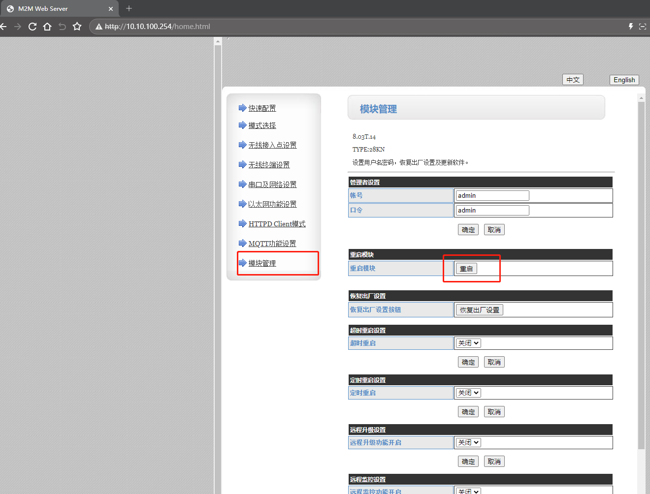 3、網(wǎng)頁設置完參數(shù),重啟模塊。