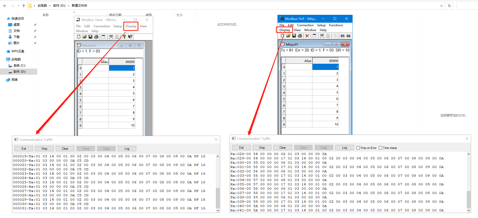 打開MODBUS SLAVE軟件,用COM3打開,串口參數(shù)和W610設置一致。