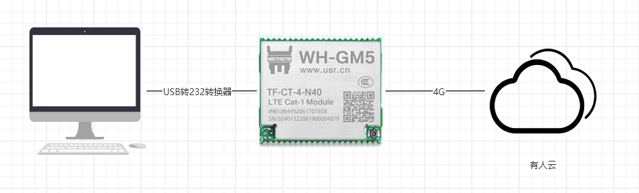 WH-GM4TF-CT-4-N40 的232串口接USB-RS232串口線到電腦USB口,然后產品接12V電源適配器上電。