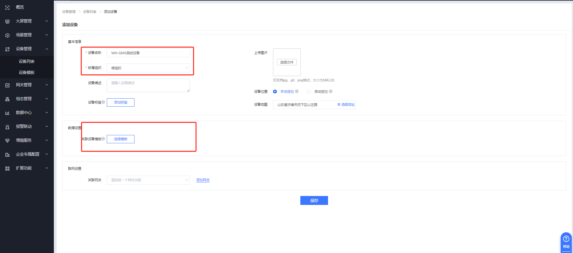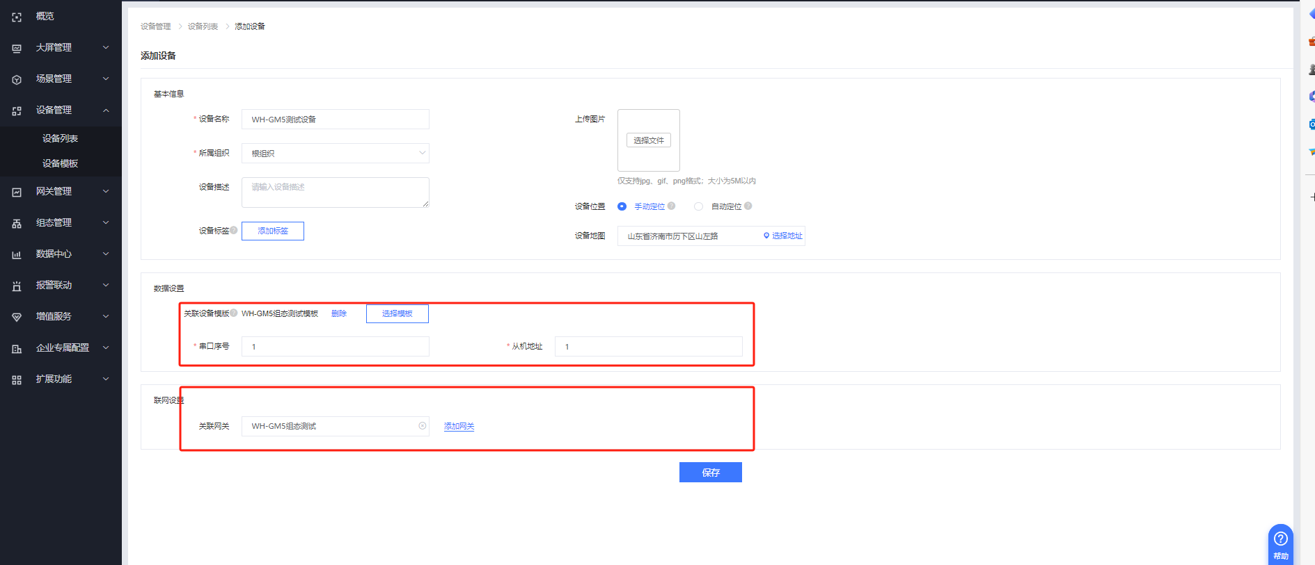 設備綁定網關,點擊保存即可。