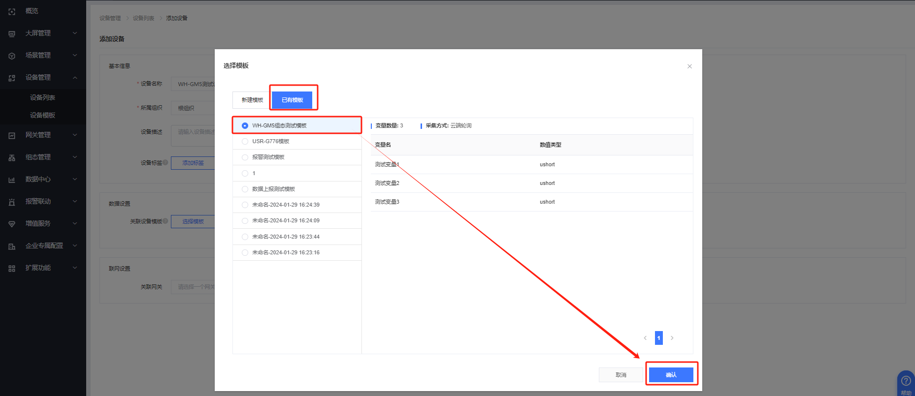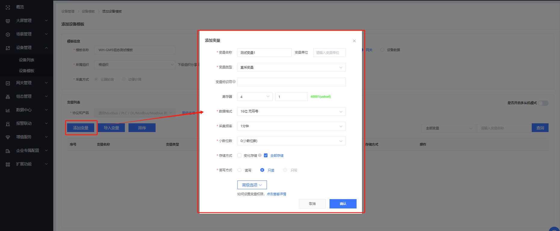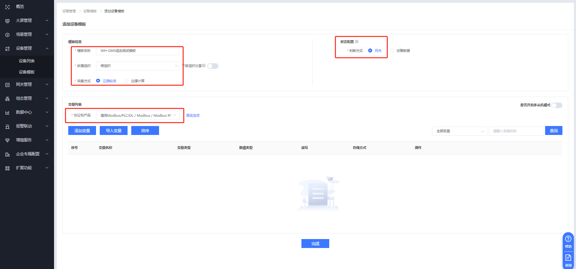 2、有人云變量模板及設備配置