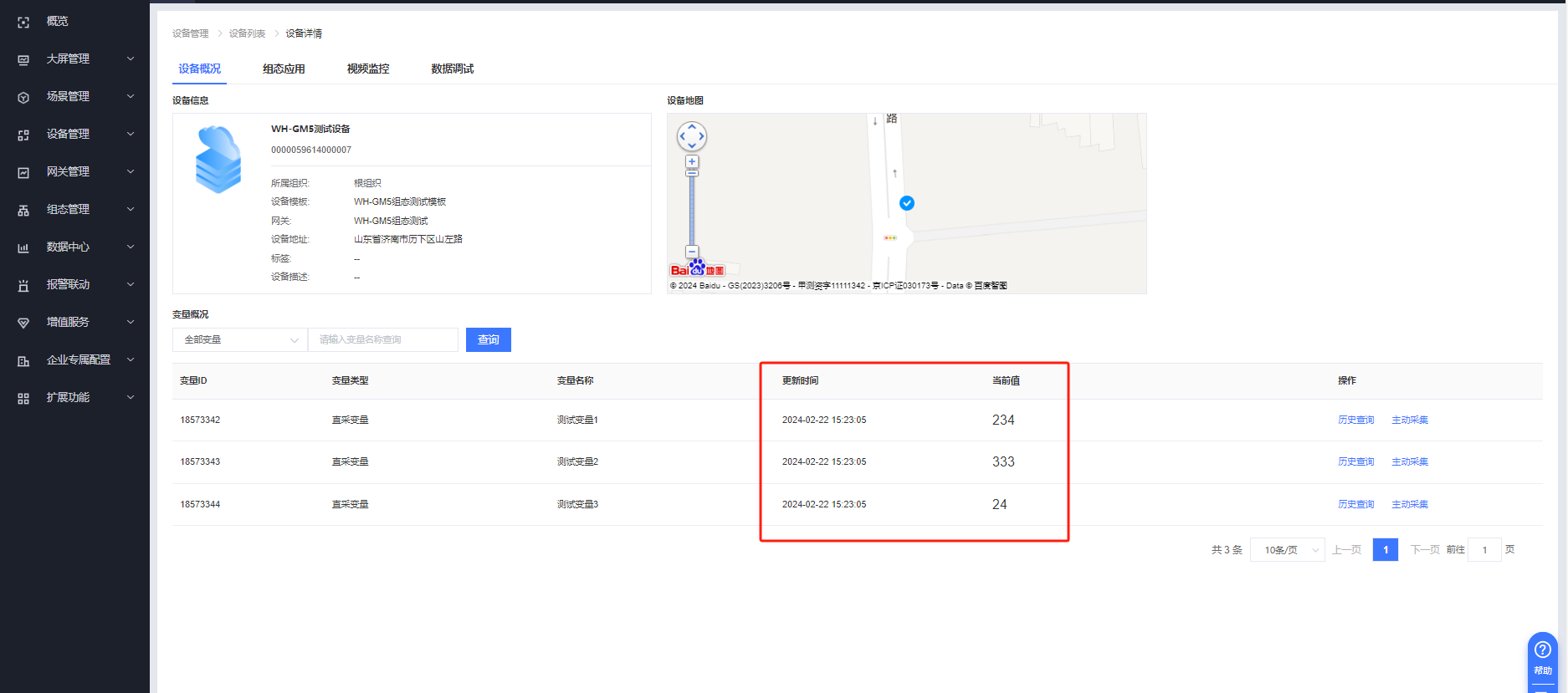 設備管理---設備列表,點擊設備名稱即可看到變量數據