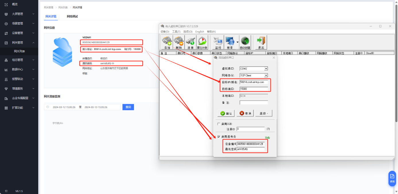 打開虛擬串口軟件V3,新建,將有人云分配的接入地址,ID 和密碼填入,點擊確認。