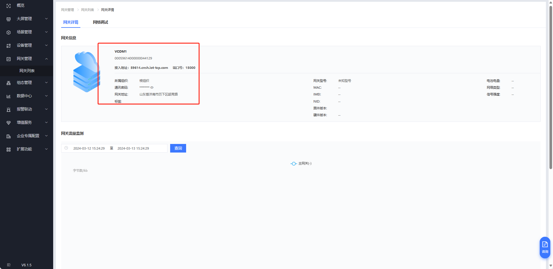 網(wǎng)關(guān)管理---網(wǎng)關(guān)列表---網(wǎng)關(guān)名字,查看有人云分配的接入地址和ID 密碼。