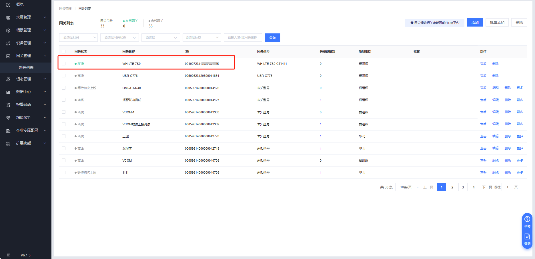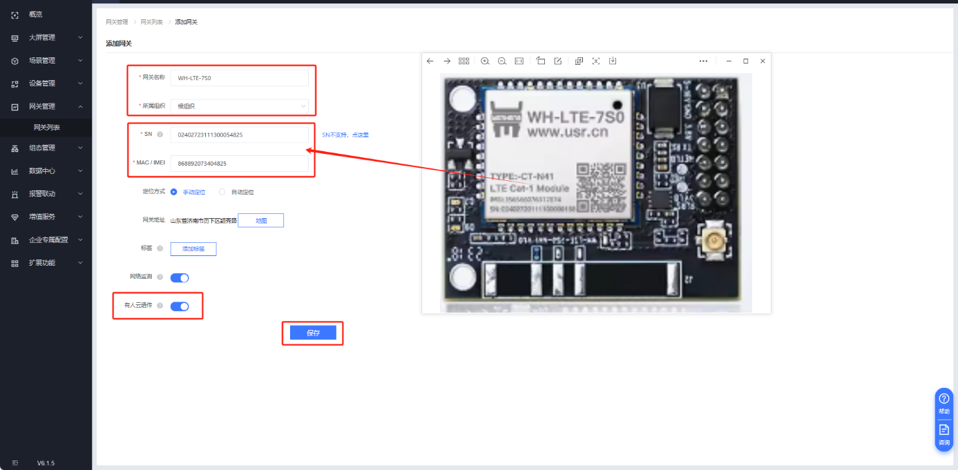 管理端選擇真實網(wǎng)關(guān),選則WH-LTE-7S0保存