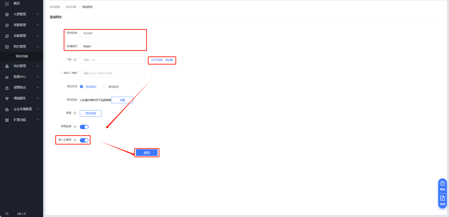 有人云---網(wǎng)關(guān)管理---網(wǎng)關(guān)列表---添加