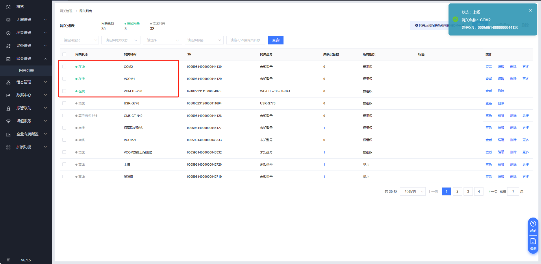 等待1分鐘即可看到WH-LTE-7S0在有人云端在線