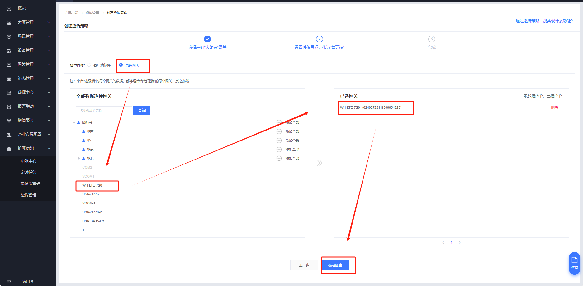 有人云---擴展功能---透傳管理---創(chuàng)建透傳策略