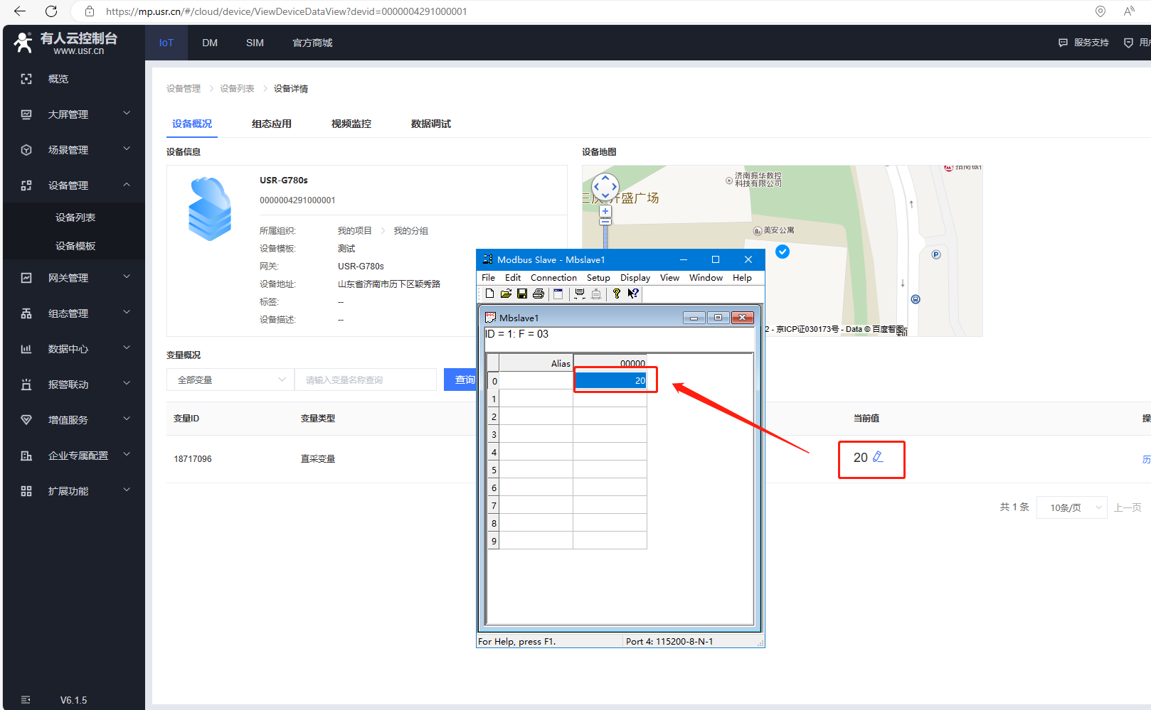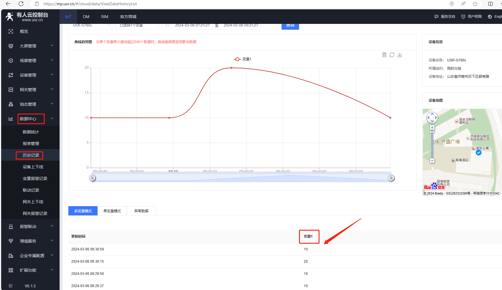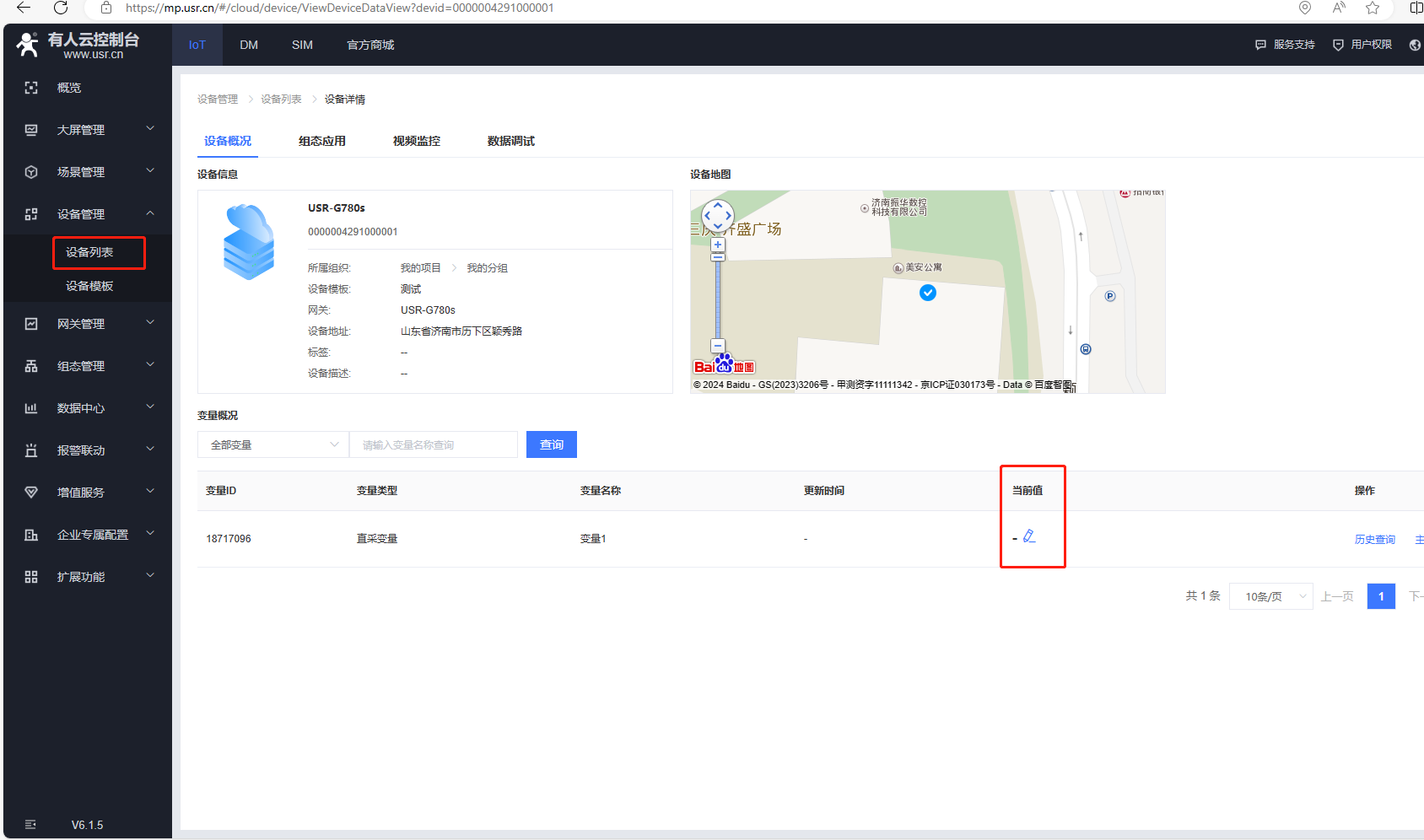 7、返回設備列表,點擊設備名稱,可以去查看變量當前值。
