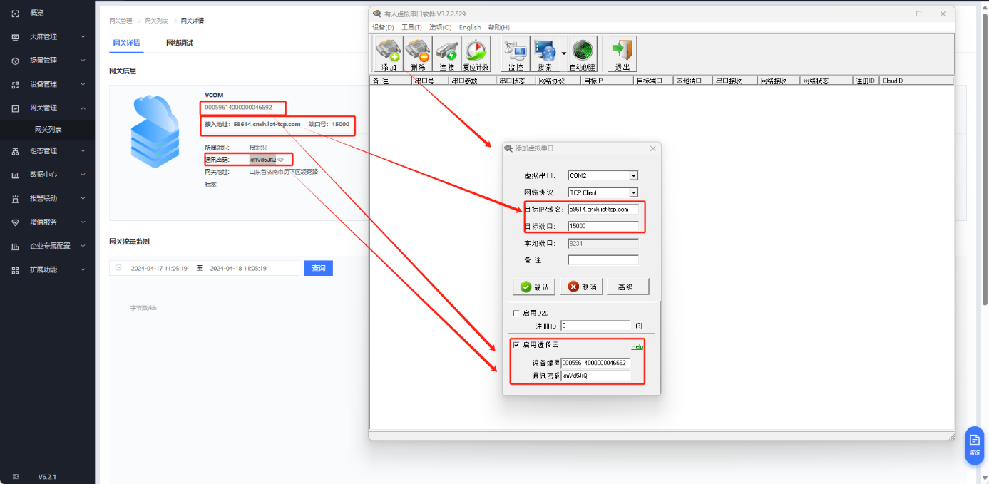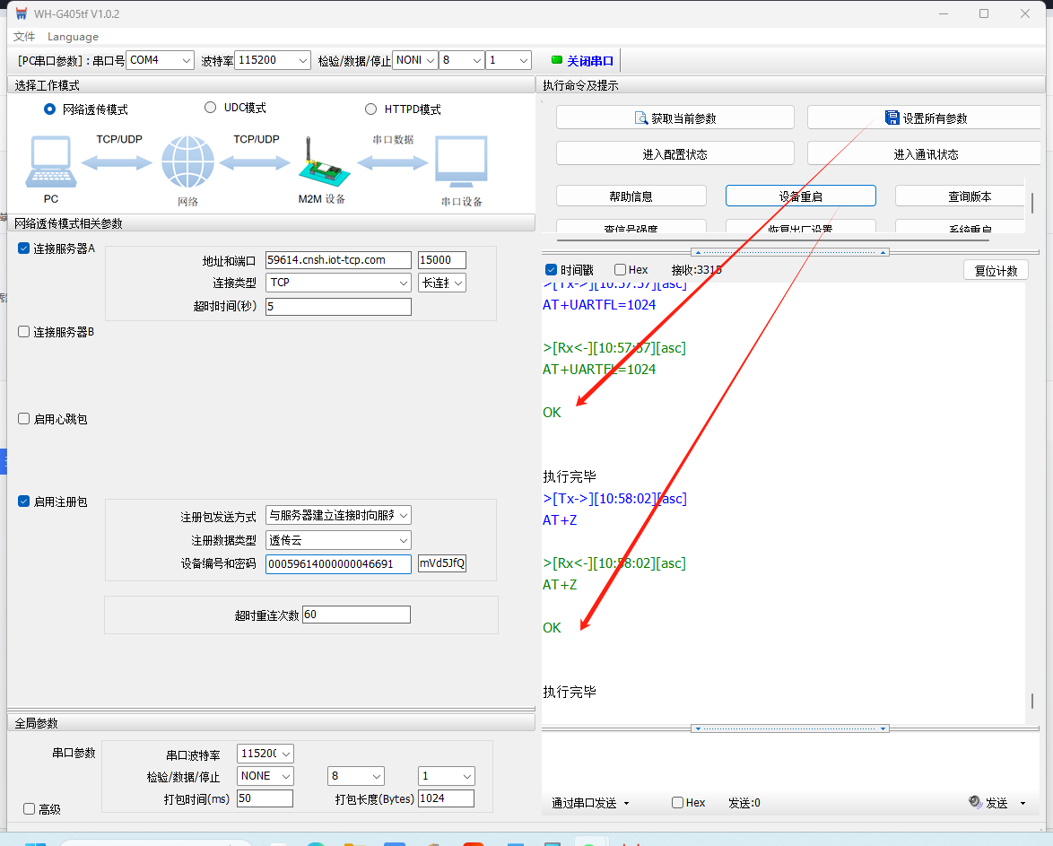 高級選項啟用透傳云,填入有人云分配的設備編號和通訊密碼