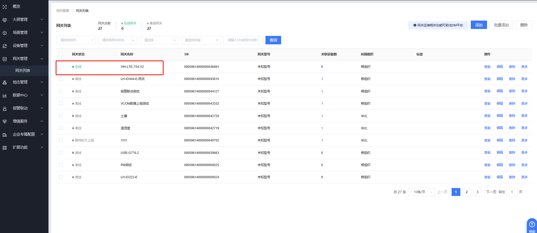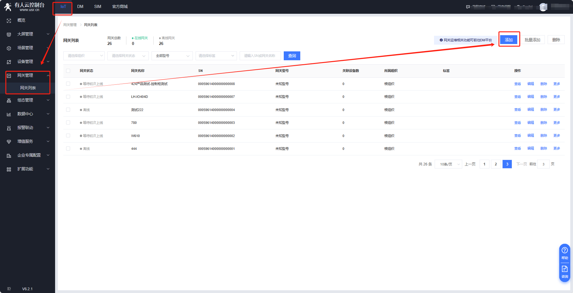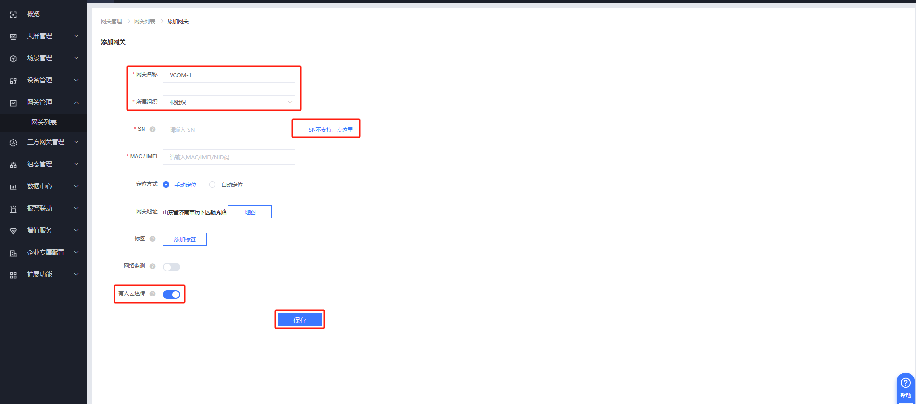 有人云IOT平臺---網關管理---網關列表---添加