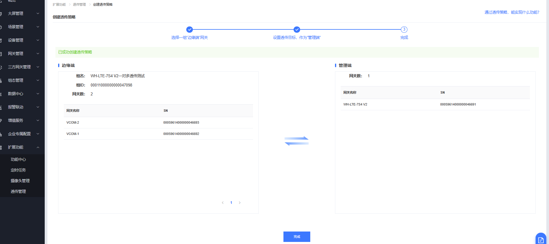 透傳策略創建成功。