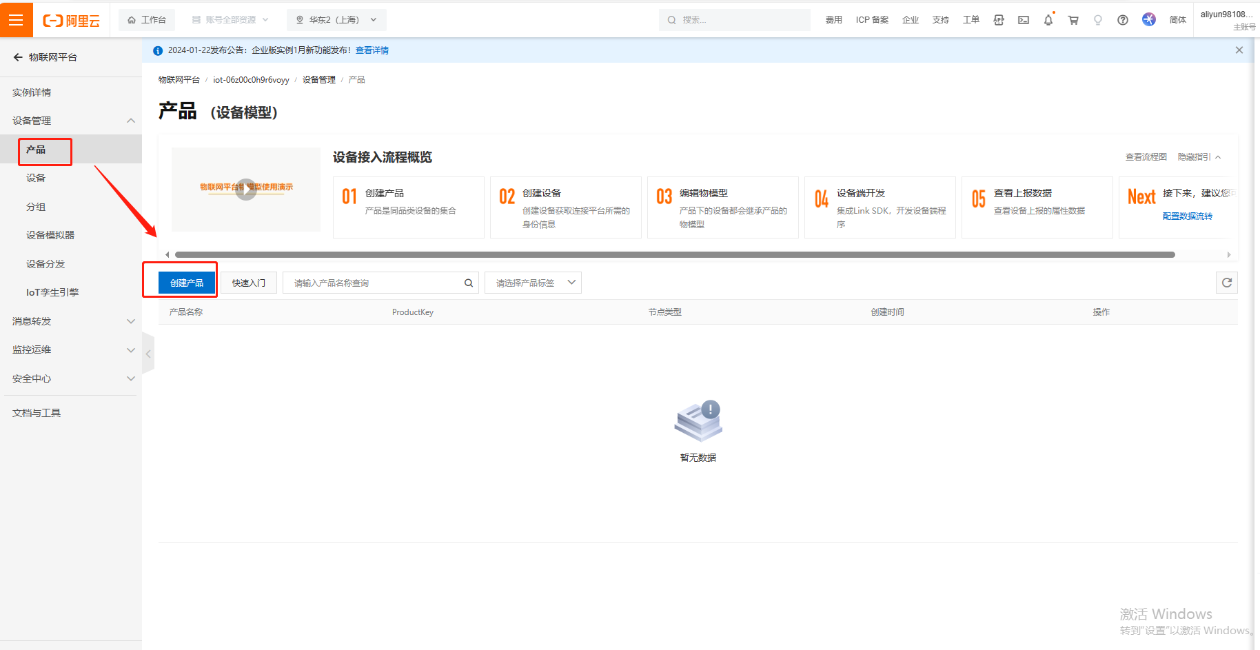 ProductKey產品密鑰填寫對應阿里云平臺設備的i4u4VIKvRXf
