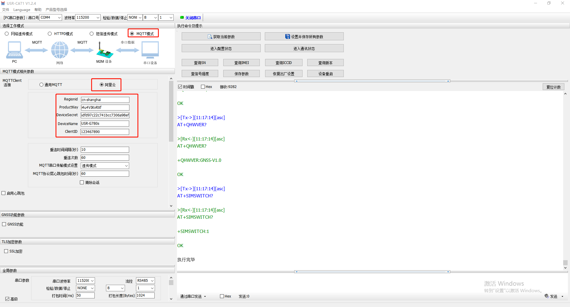 DeviceName設備名稱填寫對應阿里云平臺設備的USR-G780s