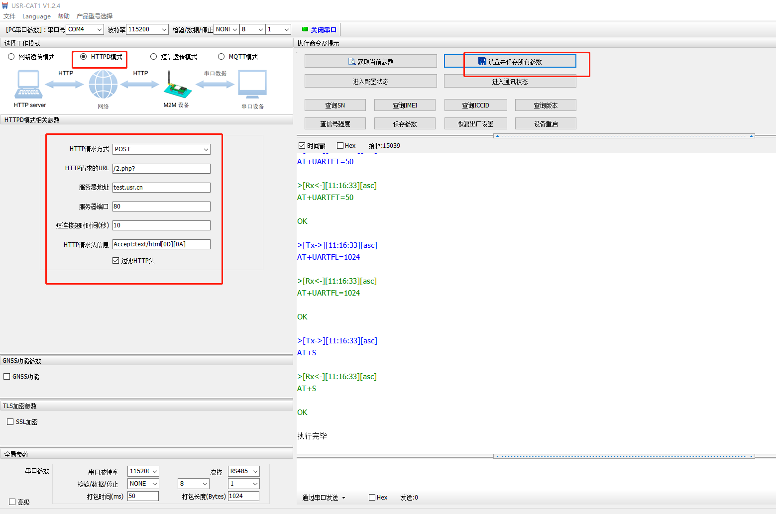 注:這里使用有人公司的測試服務(wù)器,收到串口數(shù)據(jù)會將數(shù)據(jù)返回串口。實際使用,可以直接連接實際的HTTPD服務(wù)器。
