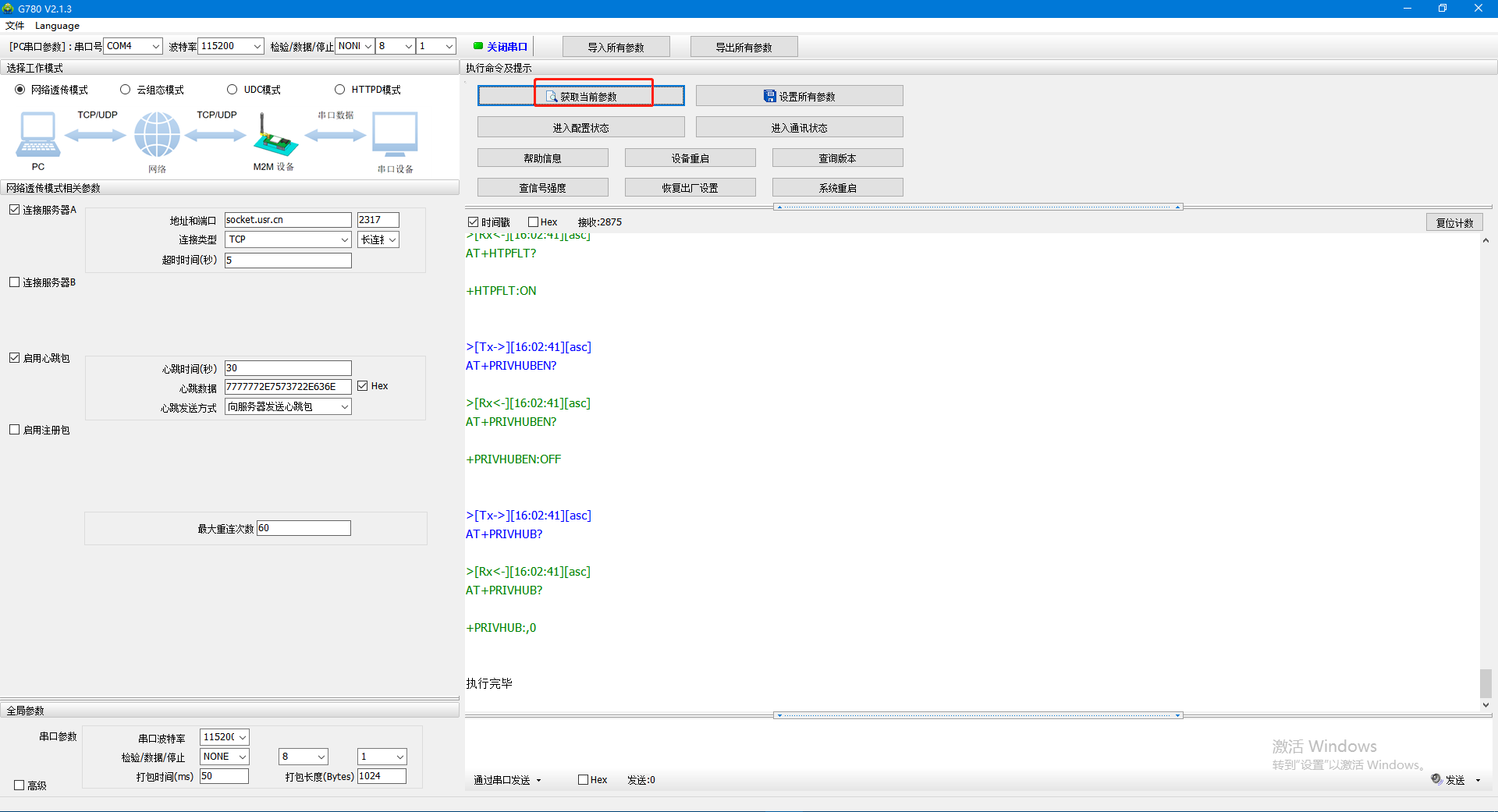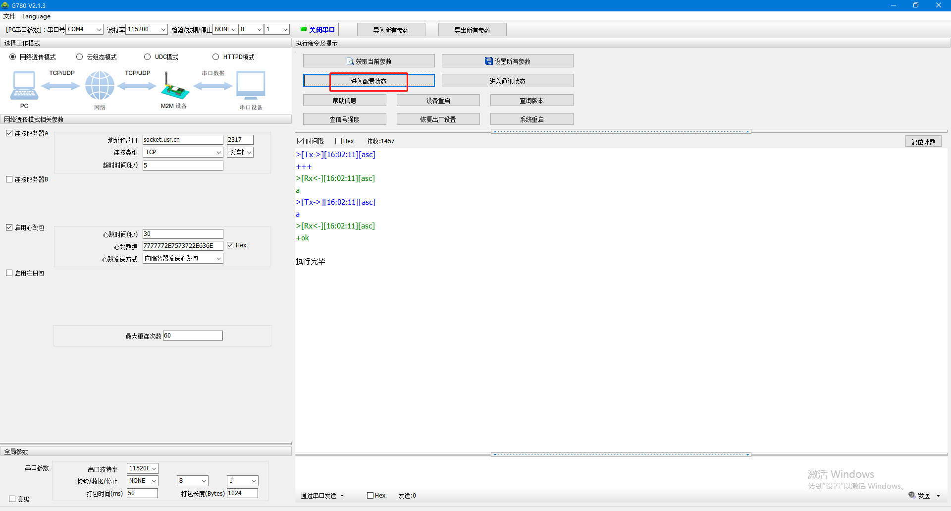 備注:USR-G780 V2連接有人公司測試遠程服務器,需要USR-G780 V2聯網,需要插可以正常聯網的物聯卡或者手機卡。實際測試連接實際使用的遠程服務器。