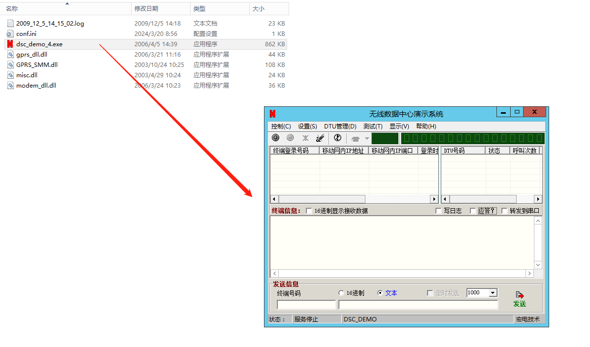 6、無線數(shù)據(jù)中心演示系統(tǒng)發(fā)送信息區(qū),對終端號碼0001,發(fā)送1234567890,USR-G776連接的串口助手,接收到數(shù)據(jù)1234567890。