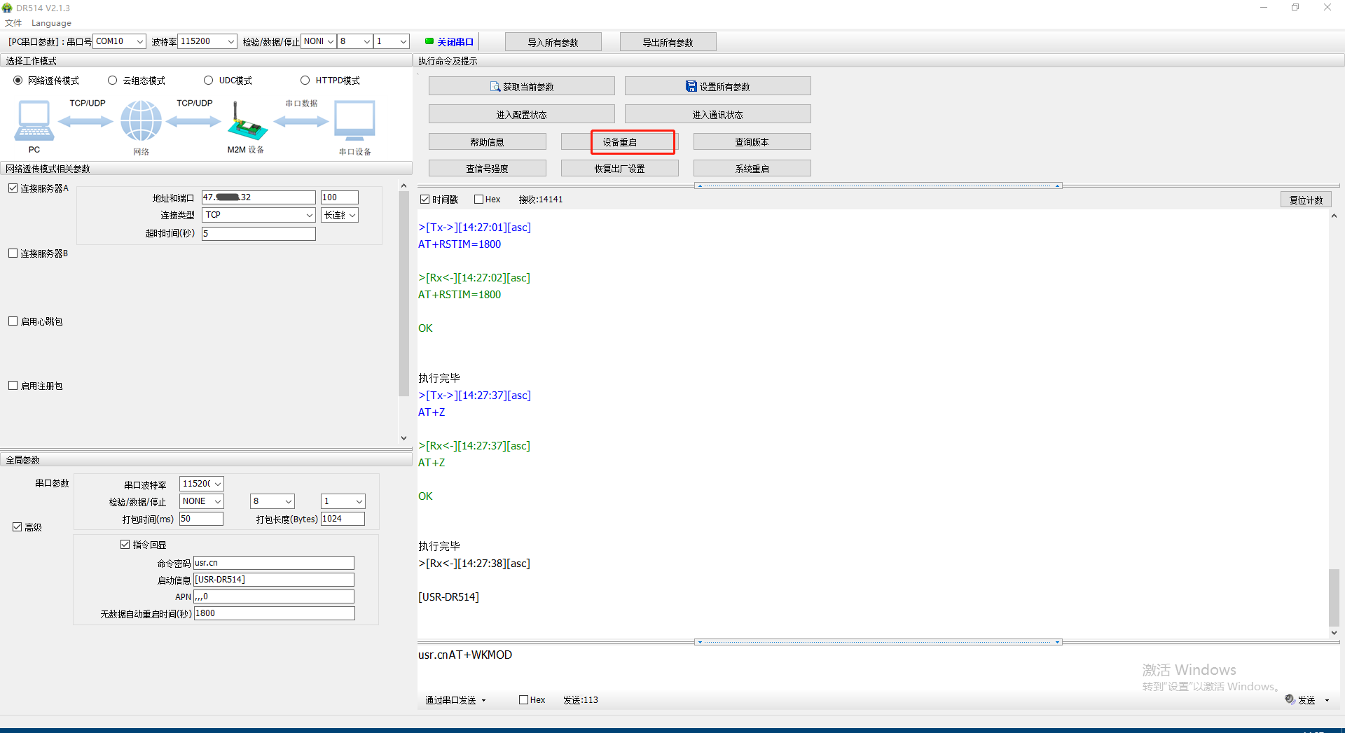 USR-DR514 網(wǎng)絡(luò)AT指令使用示例