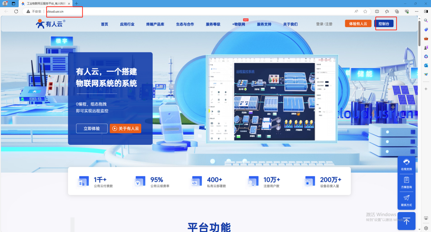 云平臺接入地址為: 4291.cnsh.iot-tcp.com; 端口號: 15000;