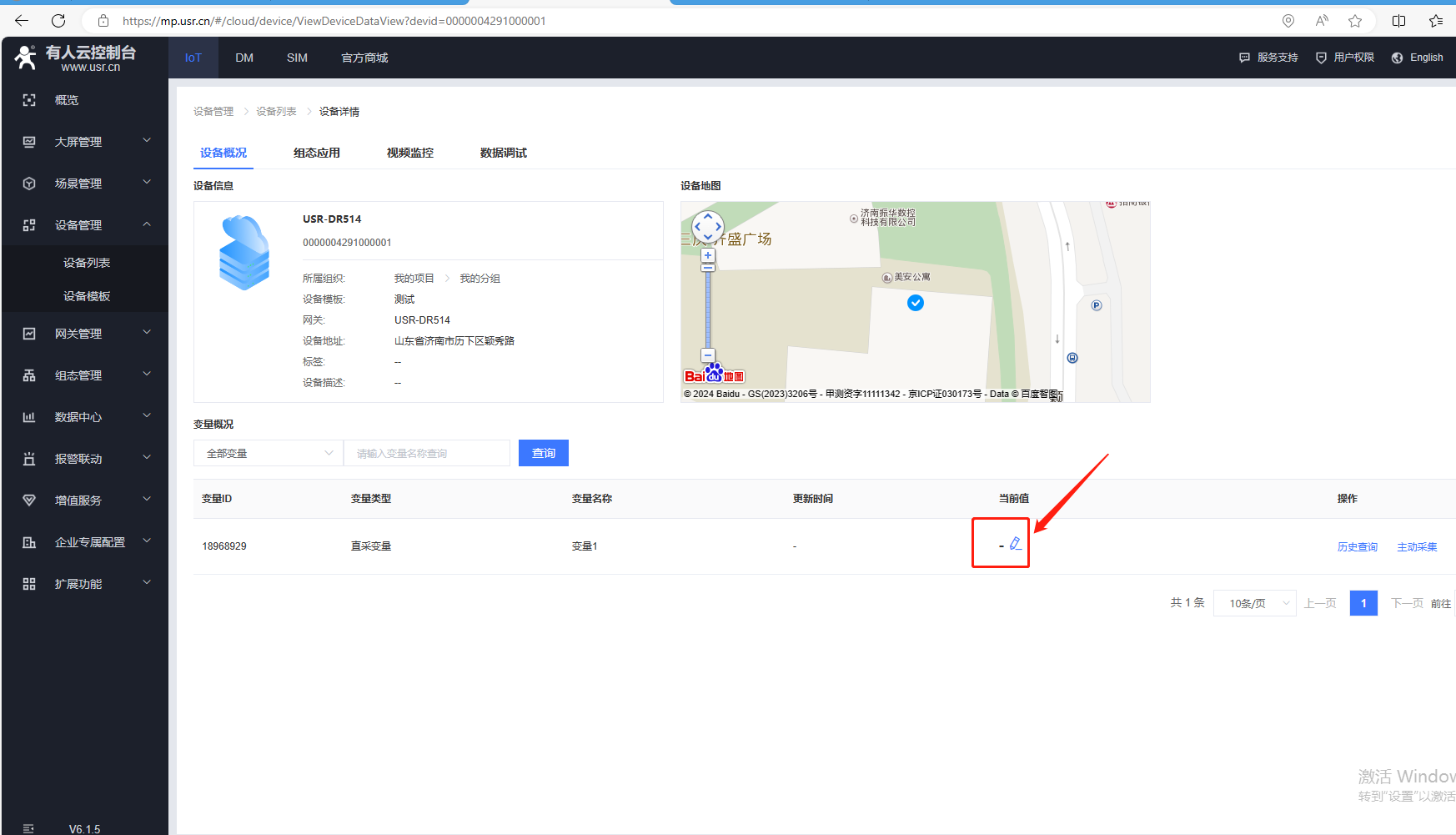 7、返回設備列表,點擊設備名稱,可以去查看變量當前值。