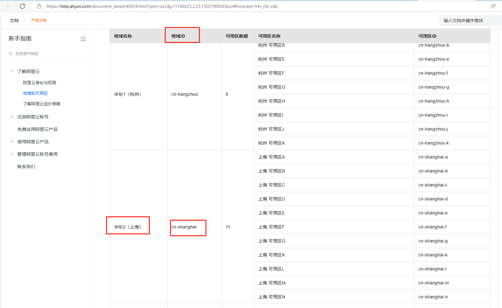 (2)根據地域名稱華東2(上海)查詢地域ID:cn-shanghai