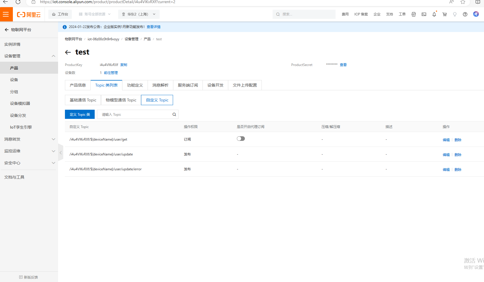 (2)點擊Topic類列表,點擊自定義Topic,找到訂閱和發布
