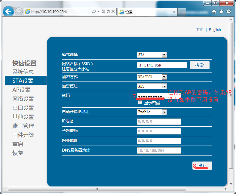 一、首先設置模塊連接到一個能訪問外網的AP路由器上。