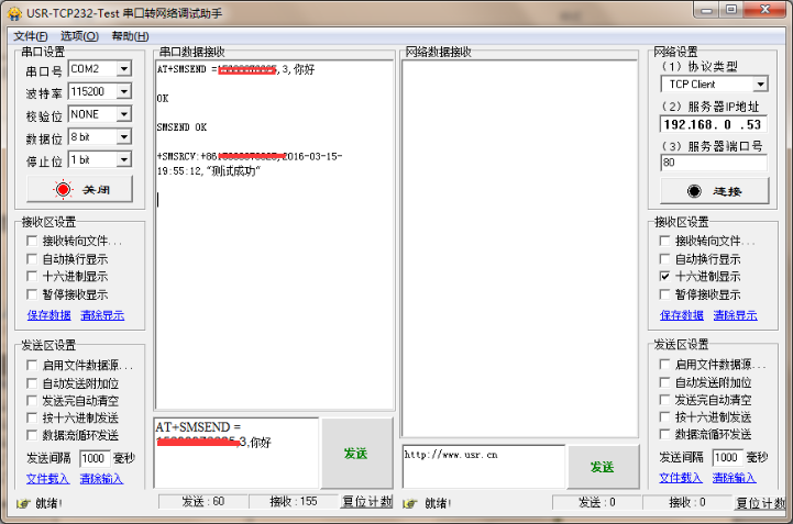 2:使用串口助手發送短信