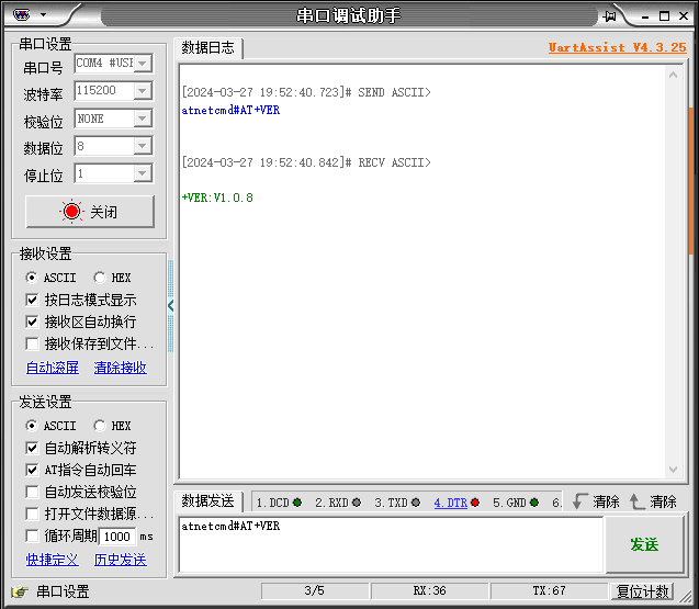 打開串口調試助手,選擇對應的串口號,串口參數和設備本身的參數對應。點擊打開。輸入指令,這里查詢固件版本。可以輕松查到。