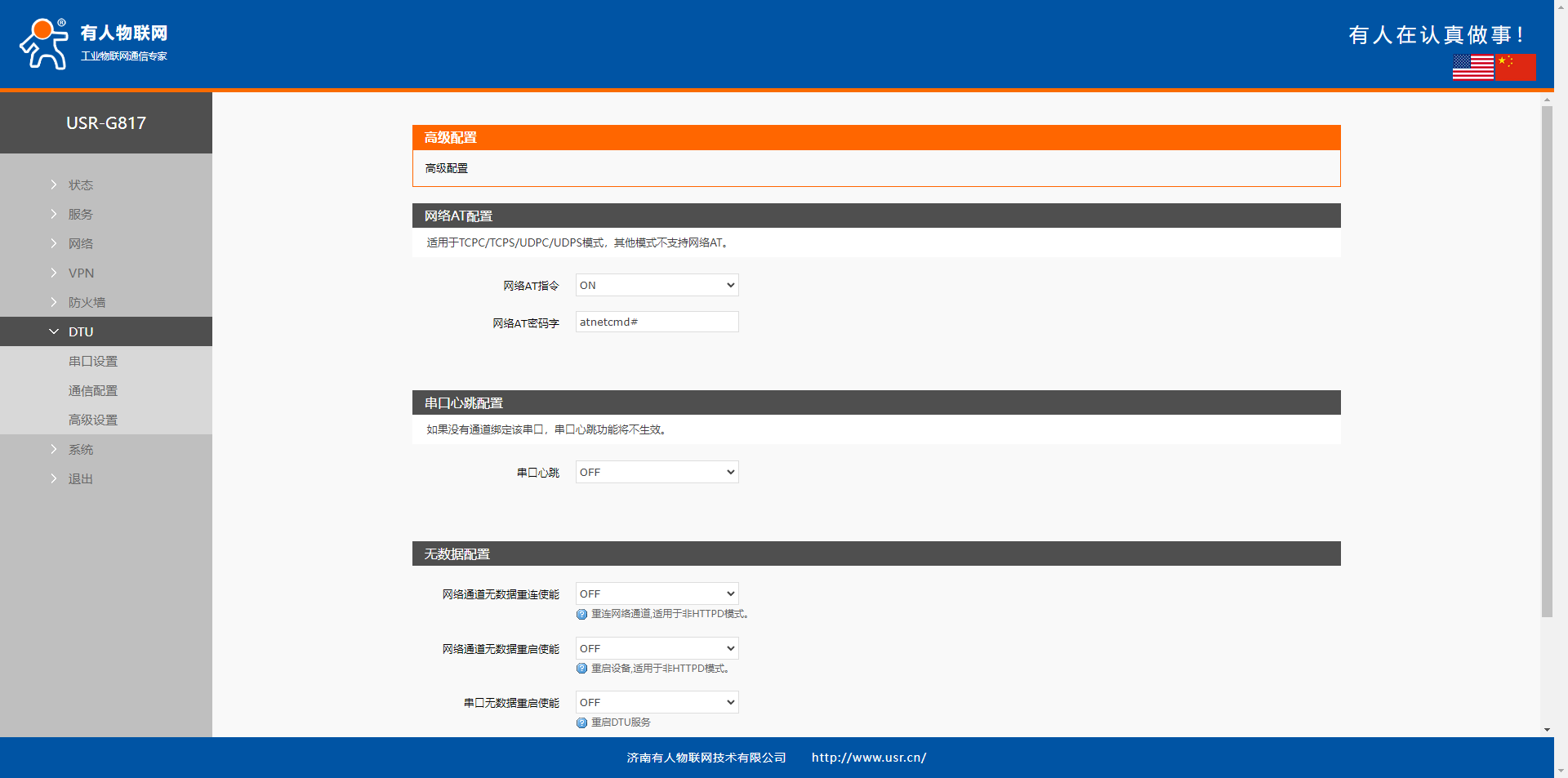 在DTU--高級設置,可以看到AT密碼字,這里可自行修改。