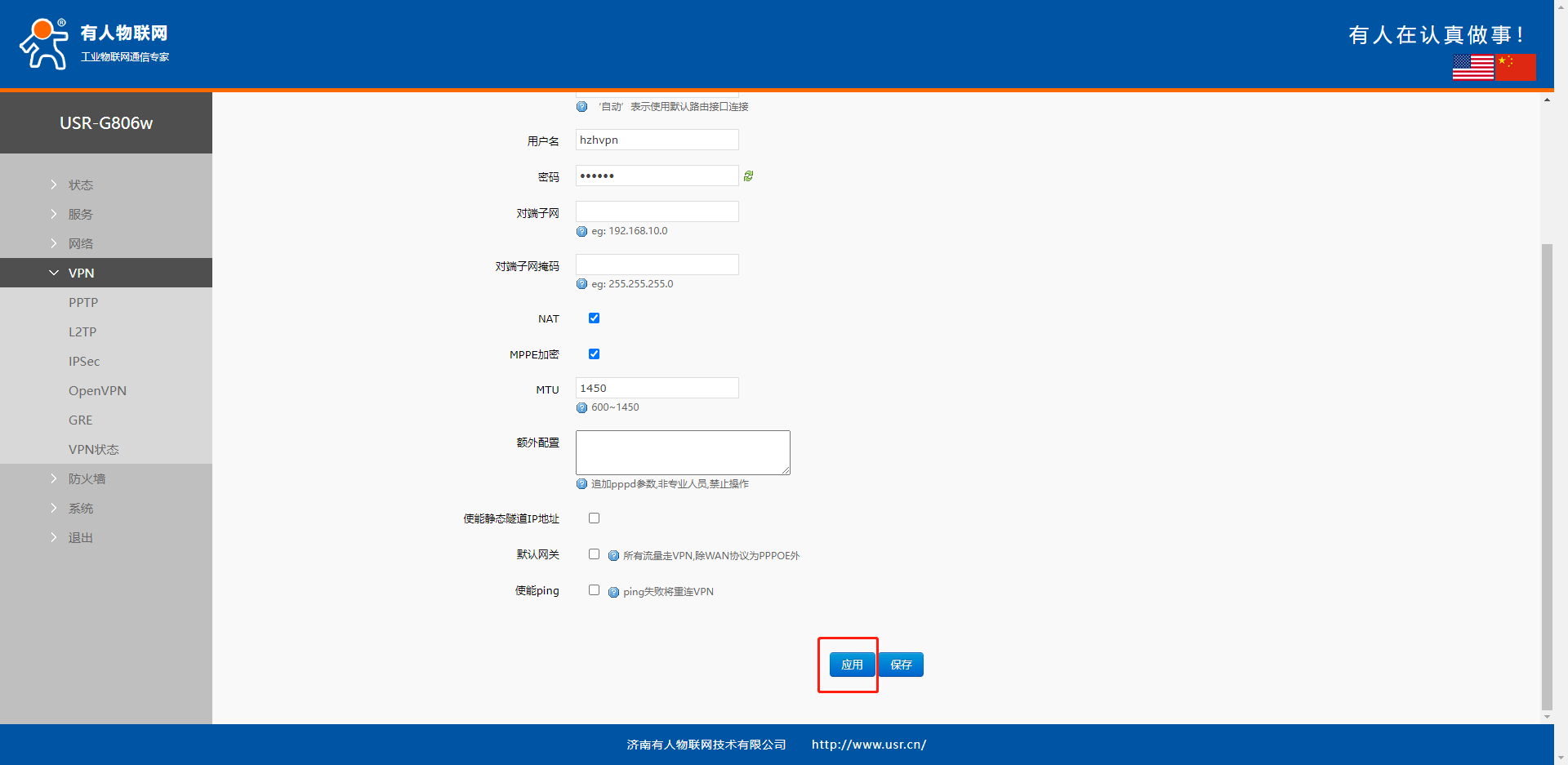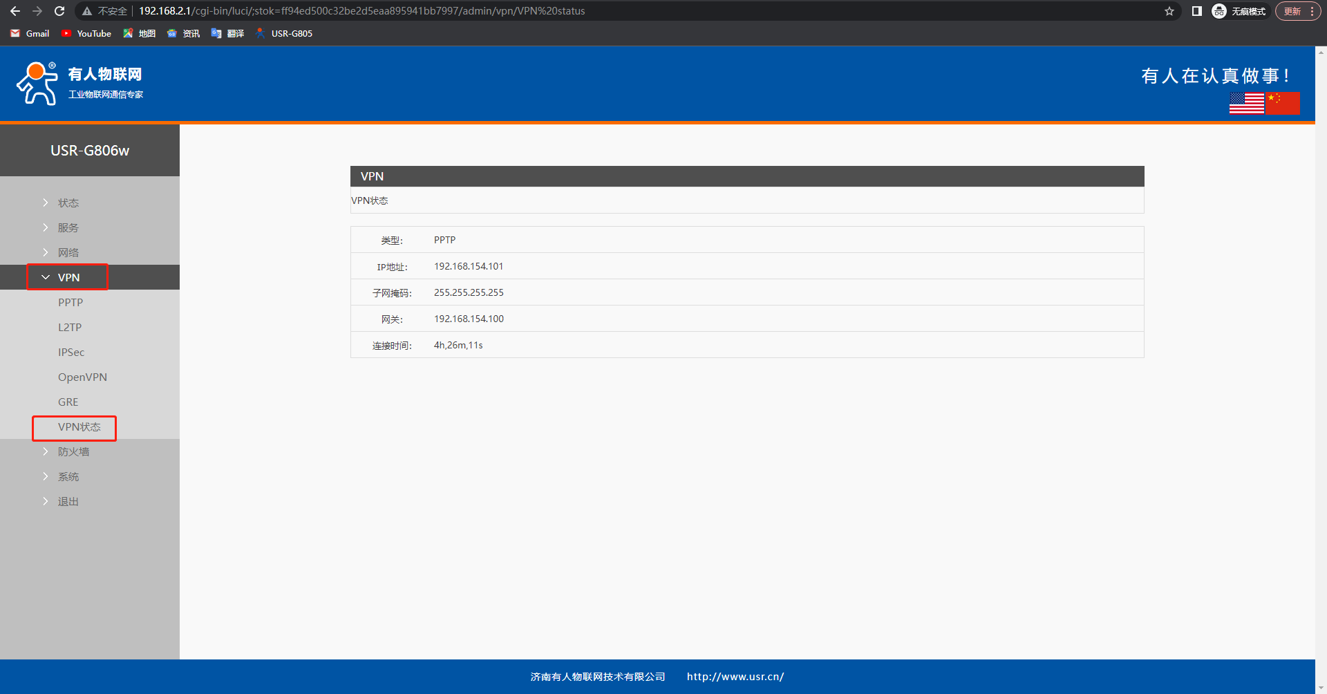設備啟動后,重新登錄內置網頁,連接VPN。