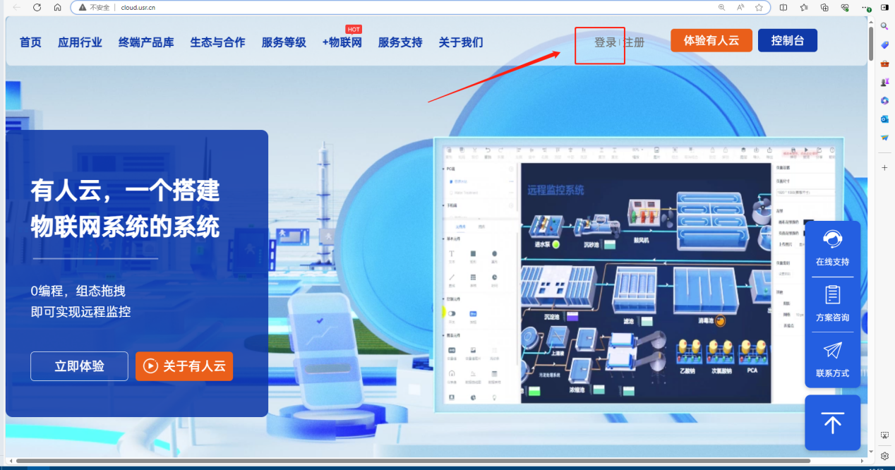 打開有人云cloud.usr.cn,點擊右上角的登錄,若未注冊可先注冊。