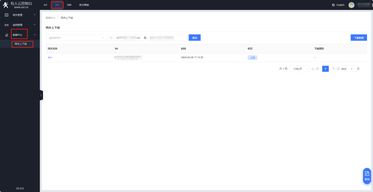 在DM--數據中心--網關上下線可以查看網關的上下線記錄。