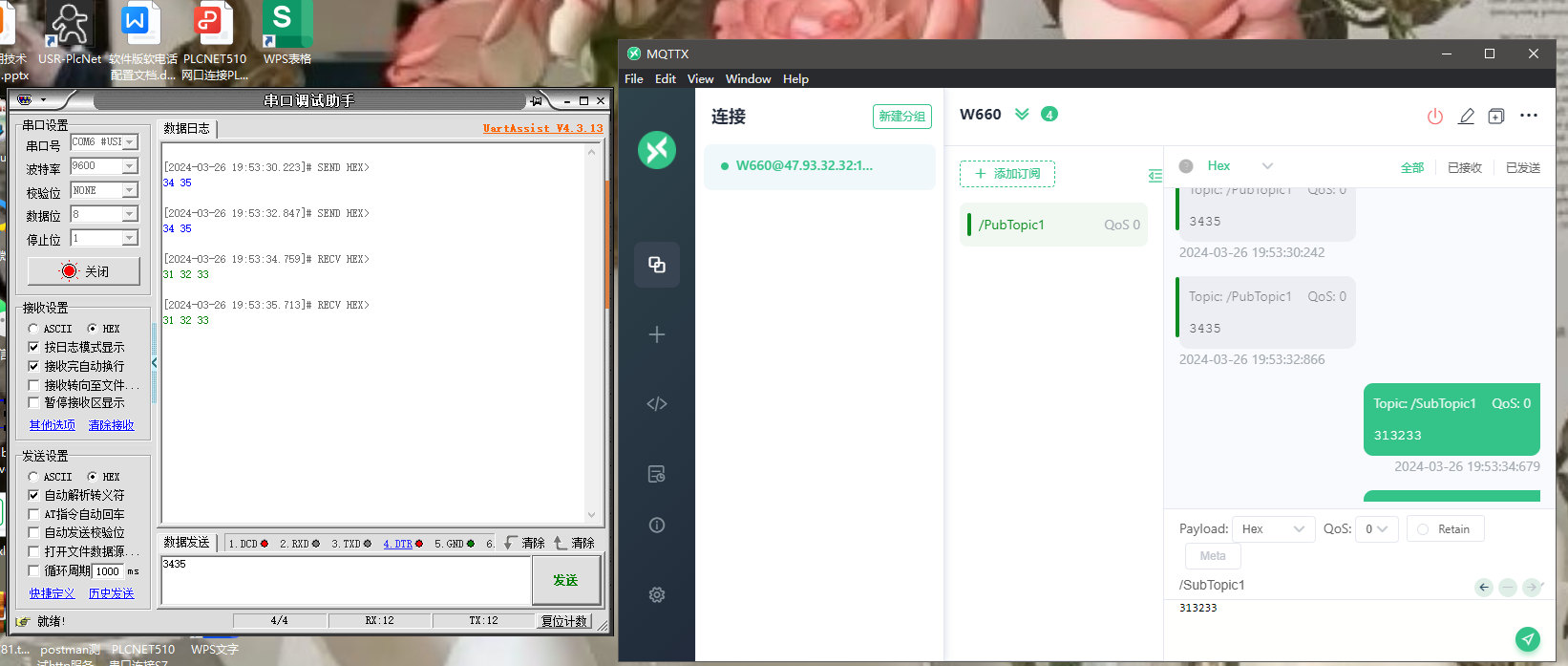 串口調(diào)試助手調(diào)用設(shè)備管理器中的com6我們用來(lái)模擬串口終端設(shè)備。串口助手發(fā)送數(shù)據(jù),可以在mqttx軟件做接收,mqttx軟件發(fā)送數(shù)據(jù)可以經(jīng)過(guò)模組傳輸?shù)酱凇?/span>