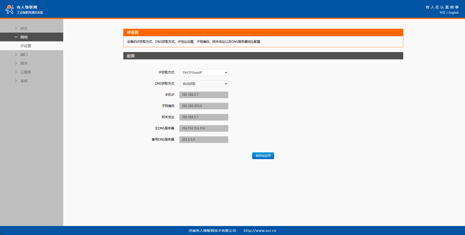 進(jìn)入內(nèi)置網(wǎng)頁(yè),在網(wǎng)絡(luò)---ip設(shè)置中將設(shè)置的ip地址改為DHCP或者給N510設(shè)備配置一個(gè)靜態(tài)ip地址(地址需要改為與上級(jí)路由器同網(wǎng)段并且未被占用的ip地址)本案例采用dhcp動(dòng)態(tài)獲取方式測(cè)試。