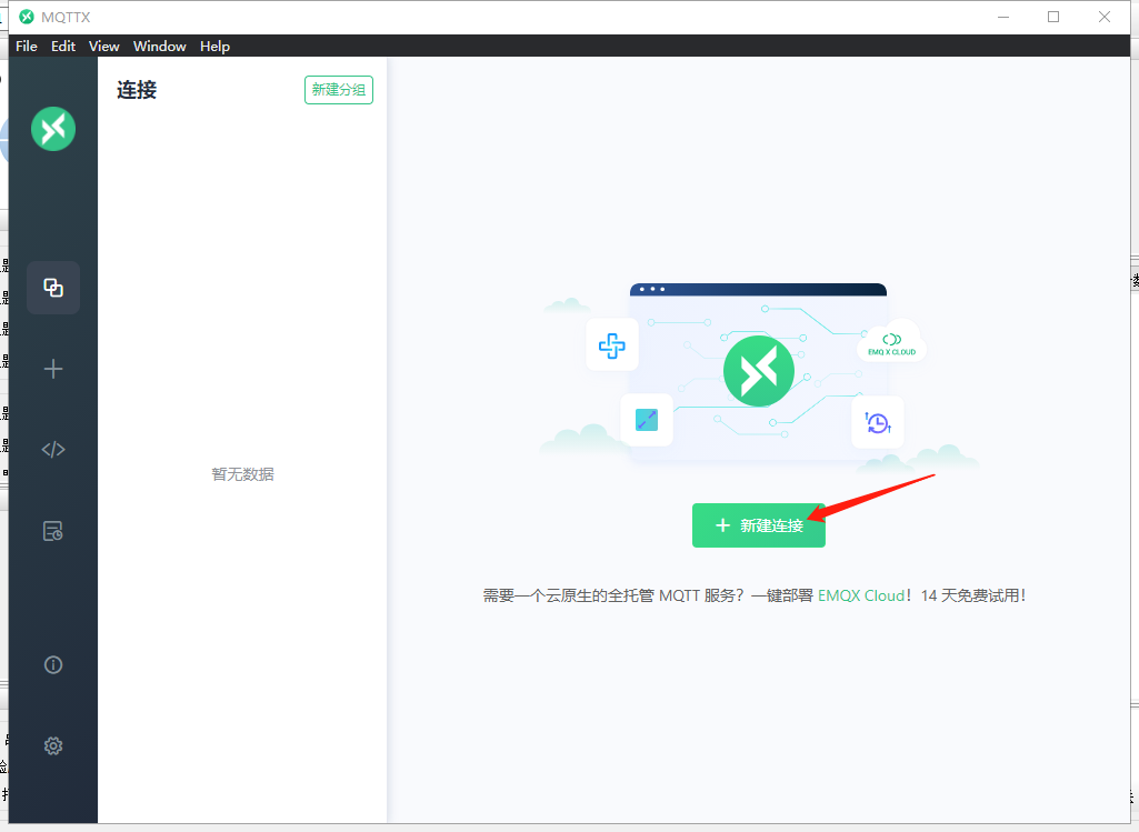 在電腦端,下載并打開mqttx軟件,點(diǎn)擊新建連接。